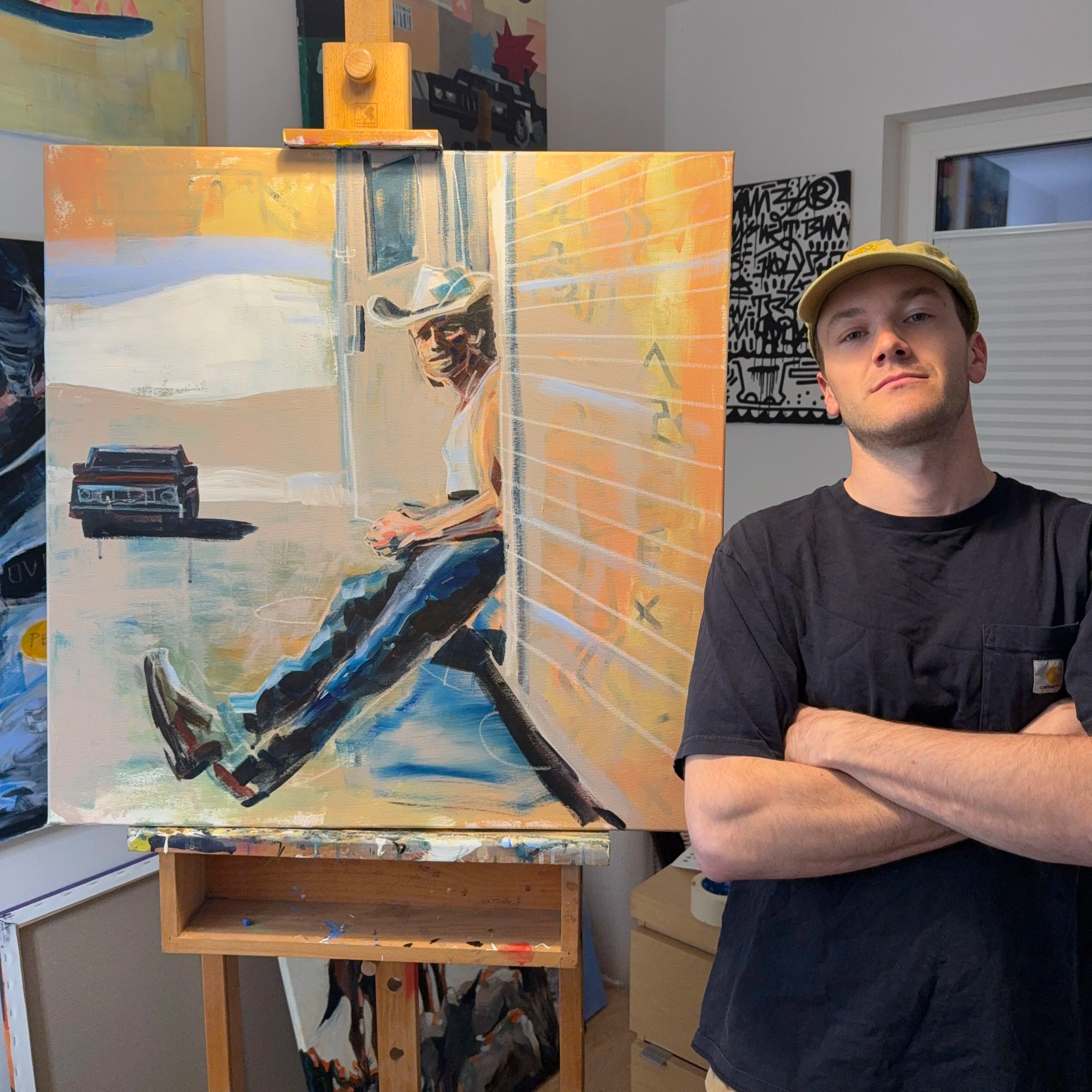 Nazywam się Piotr Kabat — artysta wizualny i reżyser. Tworzę obrazy, animacje, filmy i kierunek kreatywny dla muzyków, artystów i marek. Moje prace łączą ruch, napięcie i filmowy charakter w estetyce sportu, westernu i street artu.